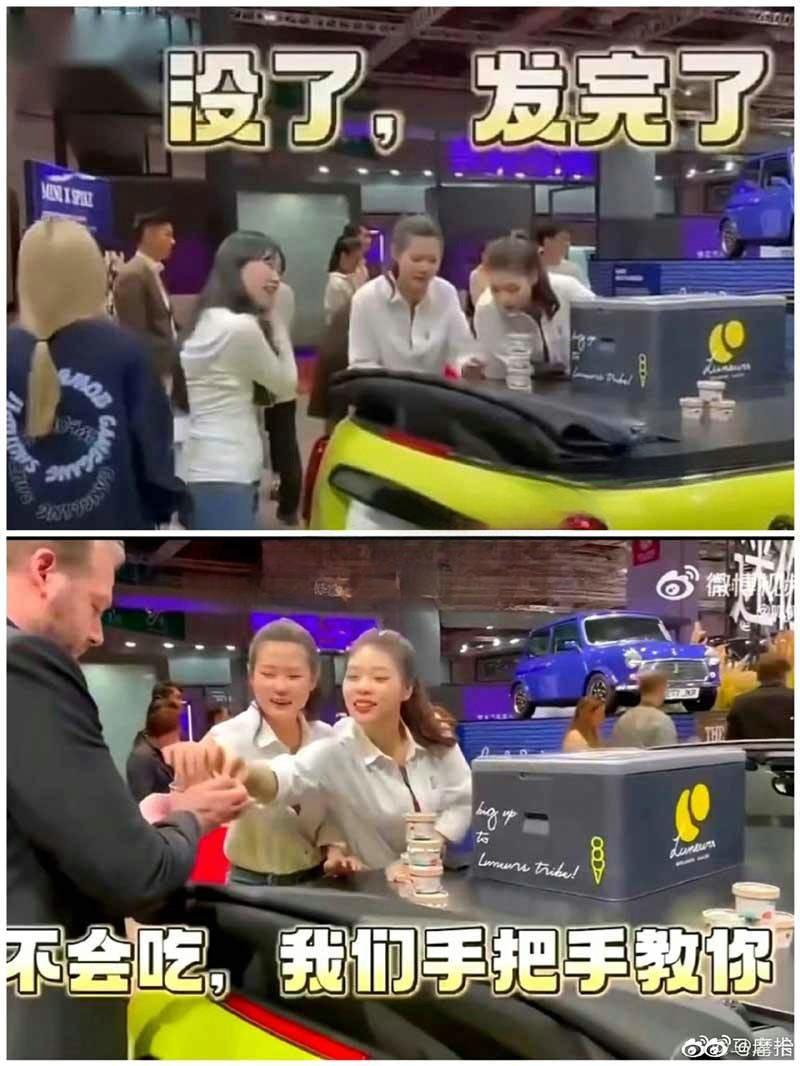 宝马冰淇淋热瓜 宝马mini车展冰淇淋只给老外吃 看看洋奴的恶心嘴脸
